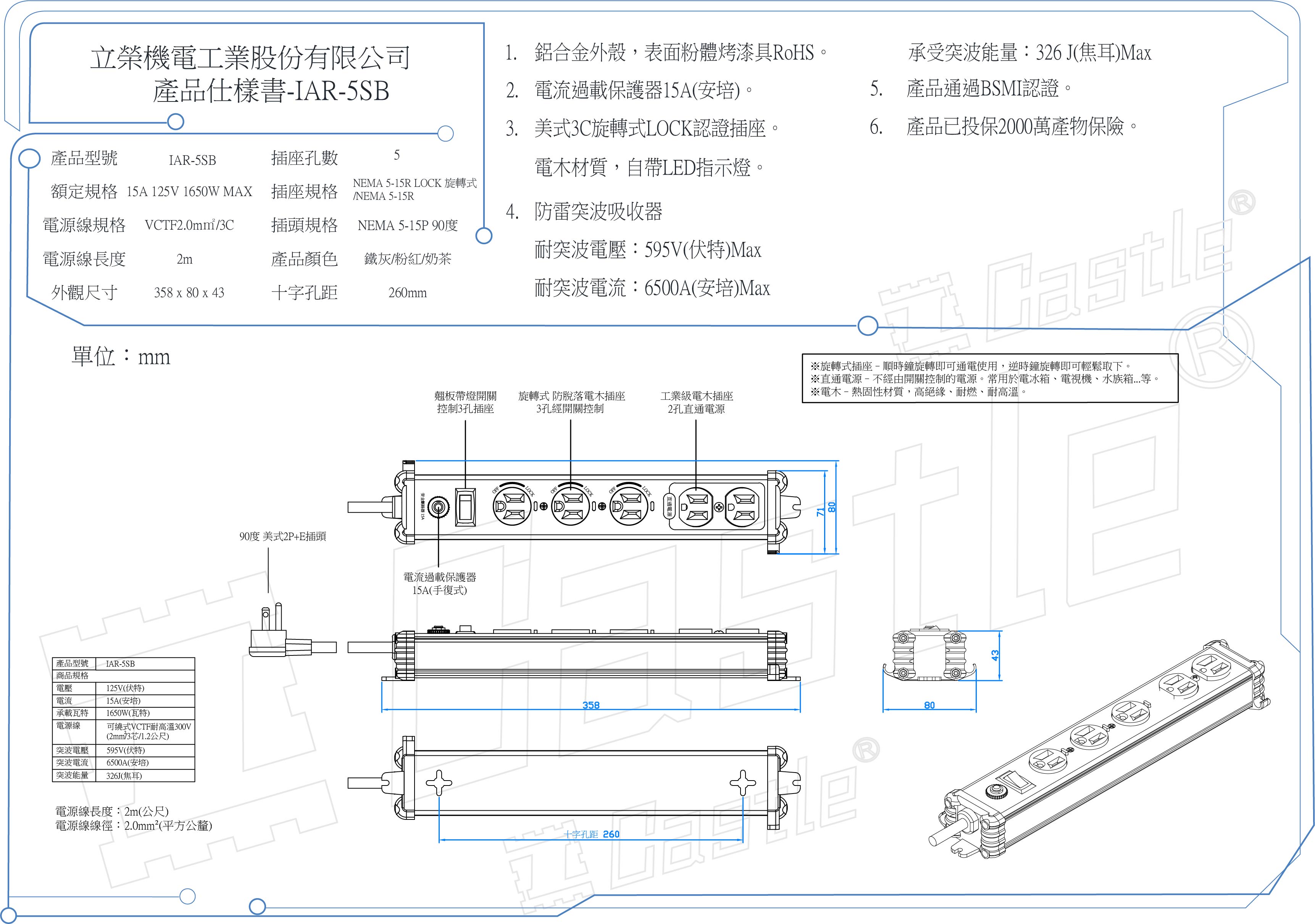- 本產品最承載額定容量為110AV、15A~1650W,勿使用125AV以上電壓,若超過負荷用電時,自動斷器而切斷電源時,帶排除超載現象後可將按鈕壓下,即可恢復正常供電。